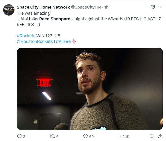 500网-谢泼德一战创6纪录先发7胜2负!休媒力挺稳居先发 申京:他太棒了|火箭|阿尔佩伦-申京|休斯敦火箭队|华盛顿奇才队|里德-谢泼德_新浪体育_新浪新闻